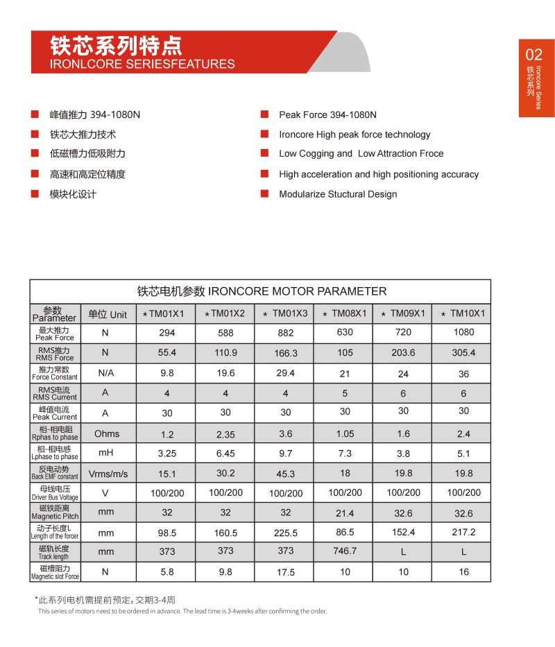 | 鐵芯直線電機(jī)參數(shù)IRON CORE MOTOR PARAMETER | |||||||