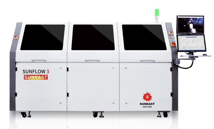 針對(duì)汽車(chē)板元件的焊接,具有空間小,焊點(diǎn)質(zhì)量高,免清洗性的特征,在助焊劑噴涂時(shí)選用免清洗助焊劑,通過(guò)控制助焊劑噴涂量,在保證噴涂效果良好的情況下,可以節(jié)省95%左右的助焊劑。預(yù)熱模塊采用分段式控制,自動(dòng)校正溫度功能,既能滿足汽車(chē)板所需的高溫度,同時(shí)也可節(jié)約設(shè)備耗電量。電磁泵錫爐可以提供穩(wěn)定的高波峰,對(duì)焊點(diǎn)進(jìn)行焊接,保證焊點(diǎn)的高質(zhì)量