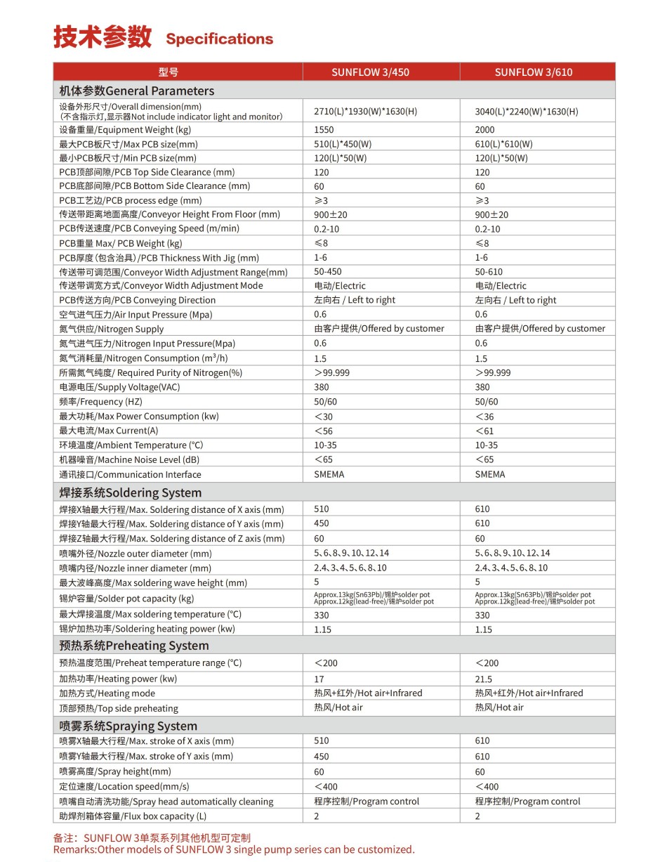 | 備注:SUNFLOW3單泵系列其他機型可定制 | ||